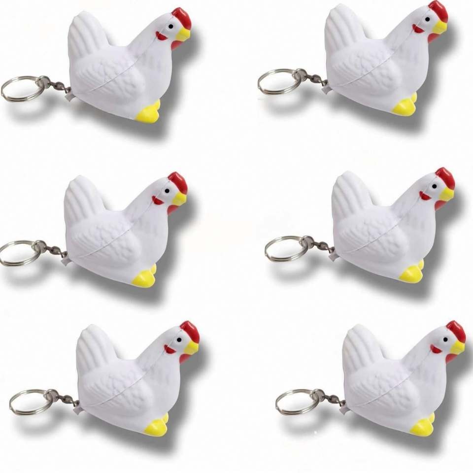 พวงกุญแจไก่โฟม PU นุ่มๆ สกรีนโลโก้ได้ตามต้องการ ของเล่นบีบคลายเครียด ลดราคาพิเศษ