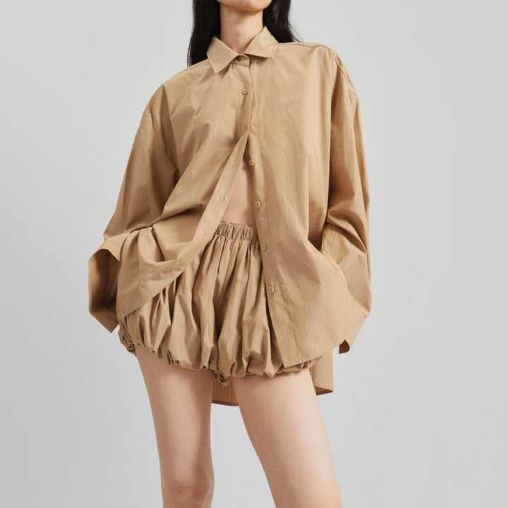 ชุดเซ็ตเสื้อและกางเกงขาสั้นสองชิ้นสำหรับผู้หญิง สไตล์เรโทร ทรงหลวม ใส่สบาย สำหรับฤดูร้อน รับสกรีนโลโก้ตามสั่ง ขายดี