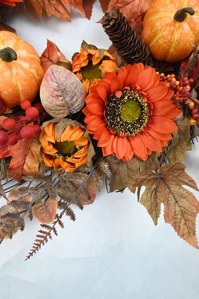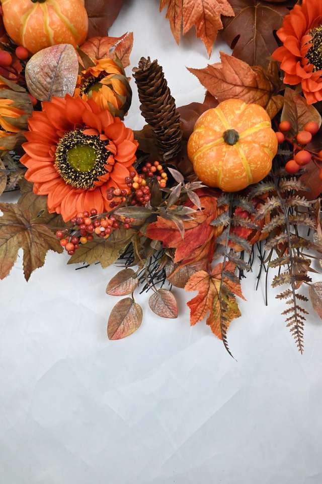 พวงมาลาใบเมเปิ้ลเทียมลายดอกทานตะวันฟักทองฮาโลวีนงานตามสั่ง