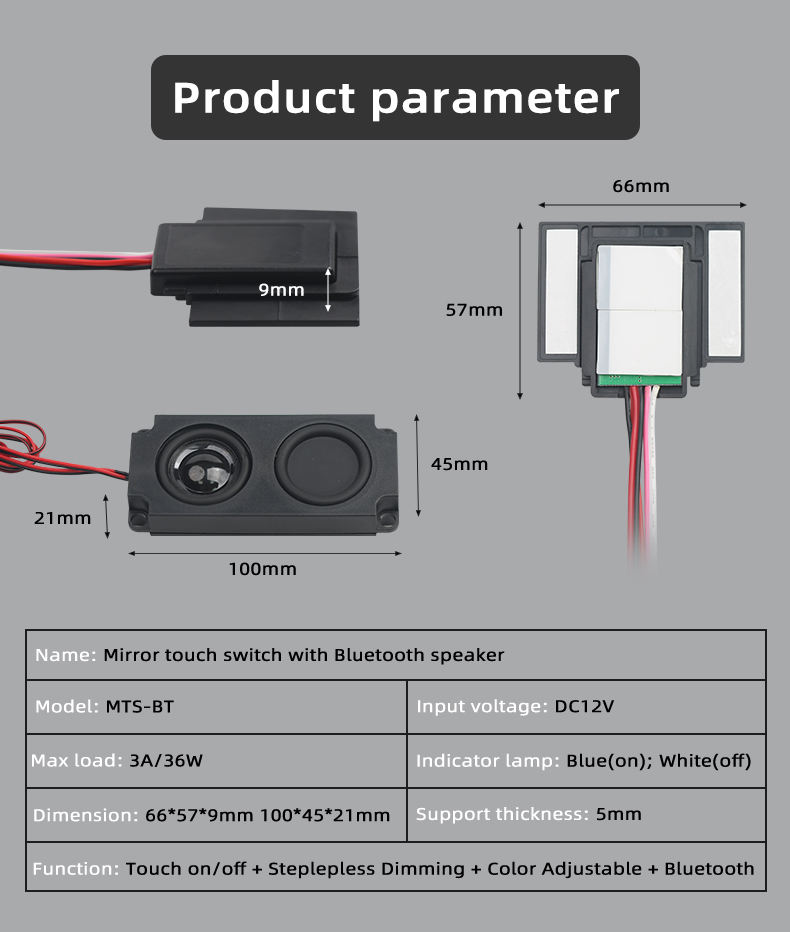 ชื่อผลิตภัณฑ์:สวิตช์เซ็นเซอร์ระบบสัมผัสกระจกพร้อมลำโพงบลูทูธ