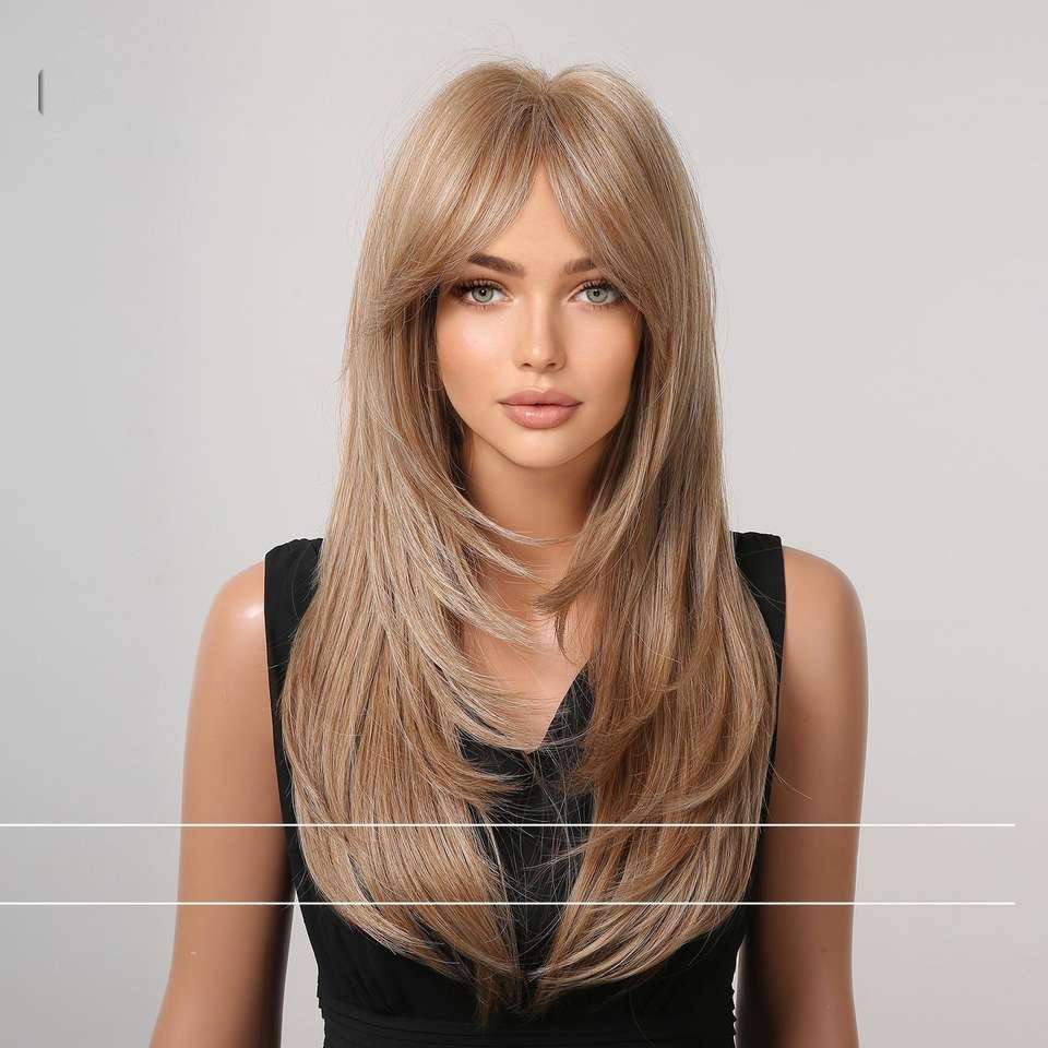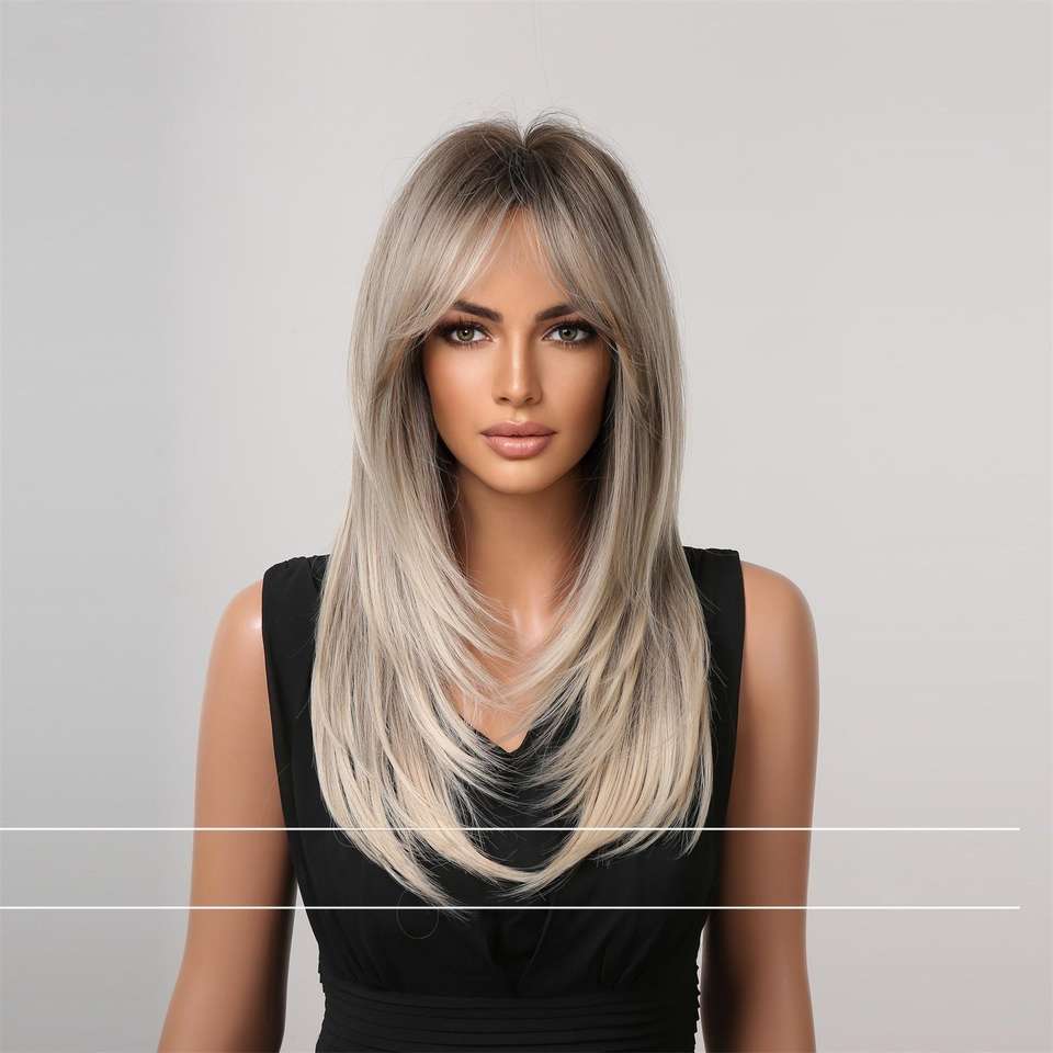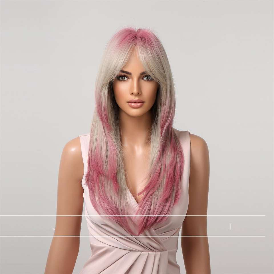 วิกผมยุโรปอเมริกันทรงผมยาวตรงแบบฝรั่งเศส มี 8 สีให้เลือก วิกผมใยสังเคราะห์สำหรับผู้หญิง ขายดี