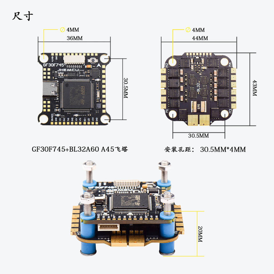 แผงควบคุมการบินของ F745 Jhemcu GF30F745-MPU BLHELI_32 45A/60A 4in1 ESC 3-6S 30X30mm FPV แบบพิมพ์ส่วนตัว
