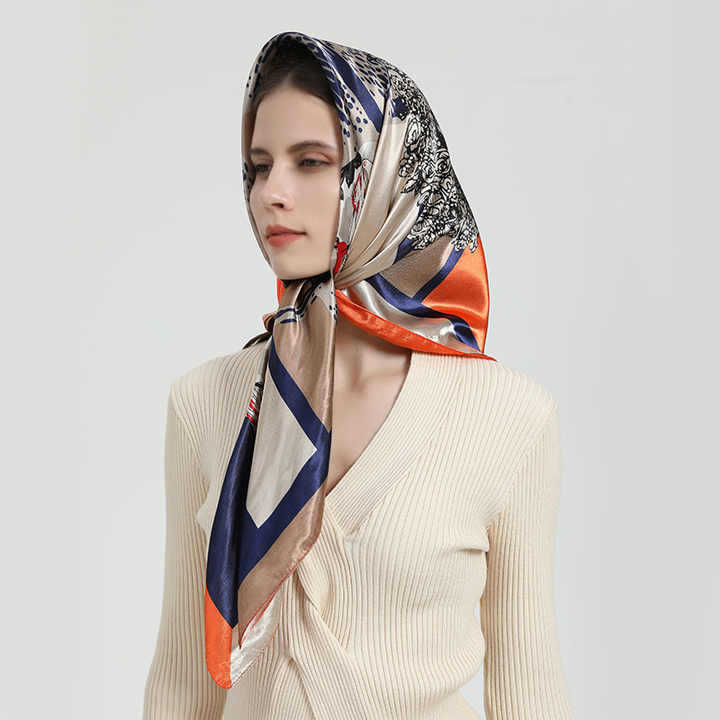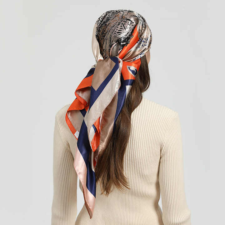 Luxury Custom Logo Printed Silk Canvas Skinny Scarf Bandana Checkered Geometric Animal Argyle Leaf Bows Skin-Friendly Breathable