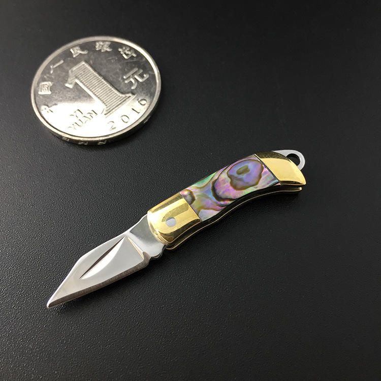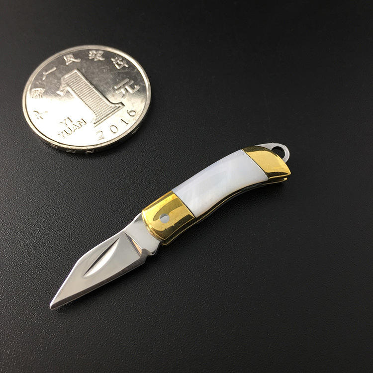 ชุดมีดพกพาขนาดเล็กขายดี พร้อมใบมีดทรงเคียว ทำจากสแตนเลส ด้ามจับทำจากทองเหลืองและเปลือกหอยธรรมชาติ