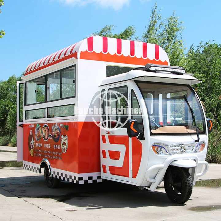รถขายอาหารสามล้อแบบเคลื่อนที่ได้สำหรับห้องครัวเต็มรูปแบบทำความสะอาดง่ายเคลื่อนย้ายได้ง่าย