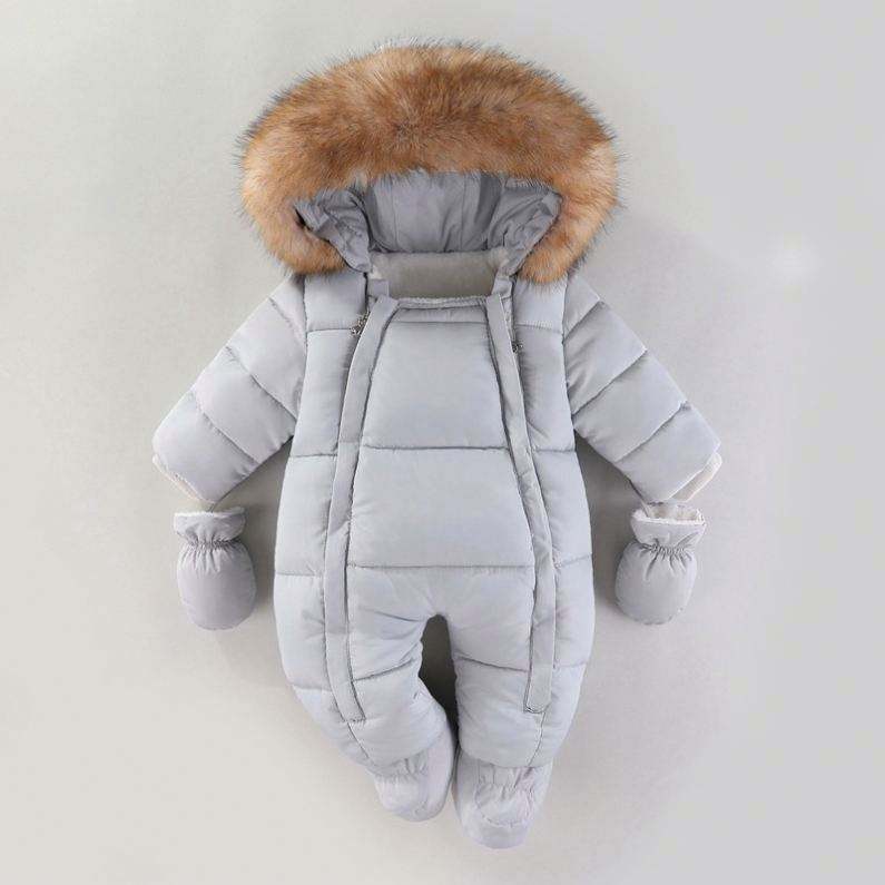 เสื้อโค้ทเด็กสีพื้นแบบหนา อุ่น กันน้ำ พร้อมกางเกง ชุดกันหิมะสำหรับเด็ก ลดราคา