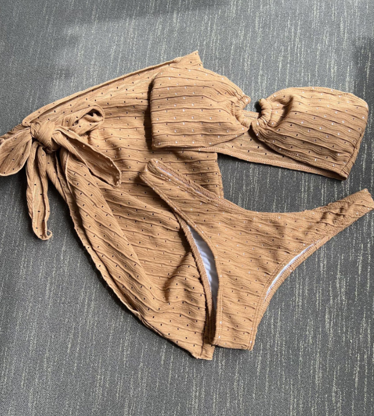 ชุดว่ายน้ำบิกินีแบบบราซิล3ชิ้นชุดว่ายน้ำชายหาดผ้าโสร่ง11สี