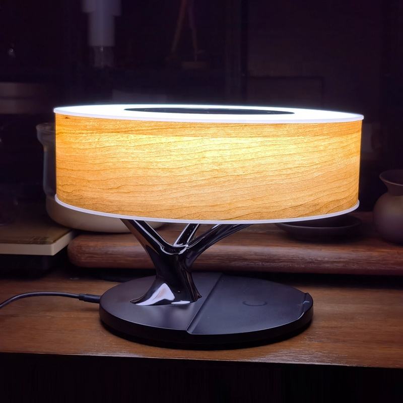 โคมไฟตั้งโต๊ะต้นไม้ขายร้อนพร้อมเครื่องชาร์จไร้สายในตัวและลําโพงไร้สายสําหรับโรงแรมบ้านห้องนอนโคมไฟตั้งโต๊ะ LED