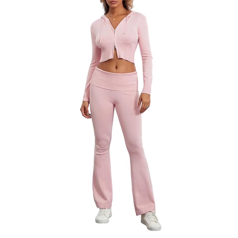 ชุดเซ็ตฮู้ดดี้สองชิ้นขายดี เสื้อครอปแขนยาวสำหรับผู้หญิง และกางเกงฮู้ดดี้ขายาวถึงเข่า ชุดเซ็ตทำงานสองชิ้นสำหรับผู้หญิง