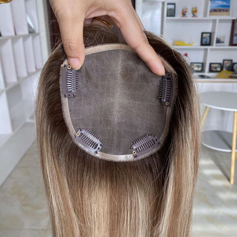 ขายดี5X5ผมผู้หญิงวิกแบบโมโนท็อปเปอร์ผมปลอมสำหรับท็อปเปอร์ผมของผู้หญิงพร้อมส่ง # สี T4-8-60