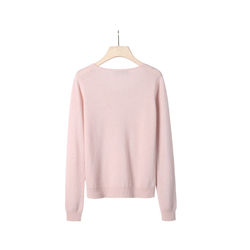 เสื้อสเวตเตอร์ถักกันหนาวแขนยาวคอวีสำหรับสตรีผ้าแคชเมียร์100% ขายดี
