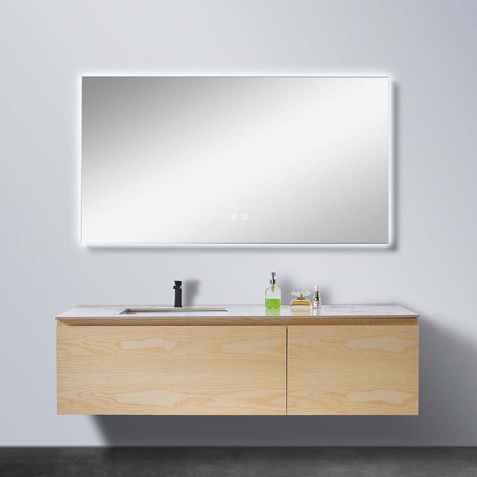 ชุดตู้ห้องน้ำพร้อมอ่างล้างหน้า ไฟ LED ในตัวกระจก ขายดี สำหรับโรงแรมและบ้าน