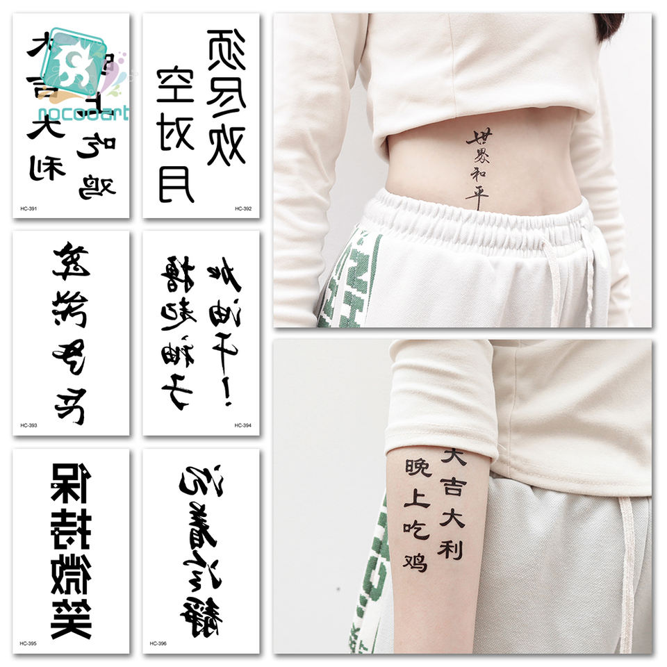 สติ๊กเกอร์แทททูชั่วคราวลายอักษรจีนสีดำ กันน้ำ ติดแขน ลายสักปลอม ขายดี