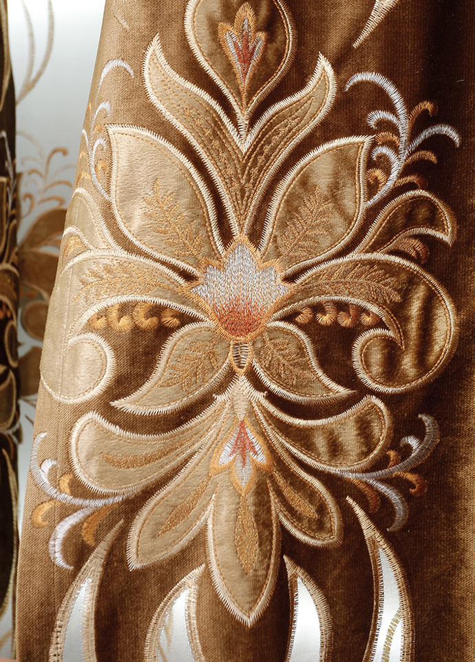 ผ้าม่าน100% สีเหลืองปักลายทำจากโพลีเอสเตอร์