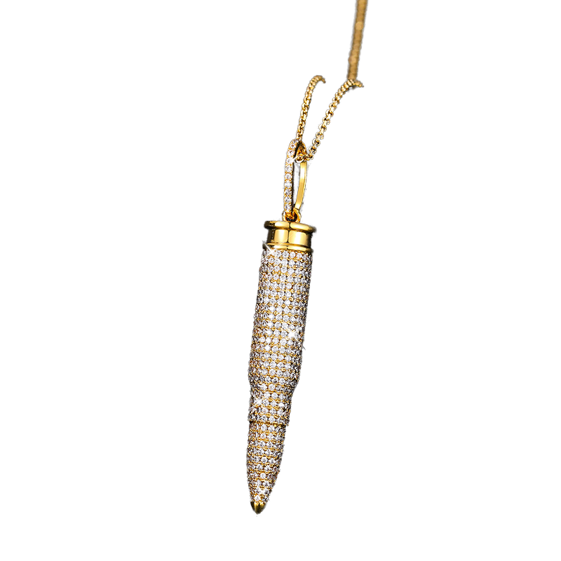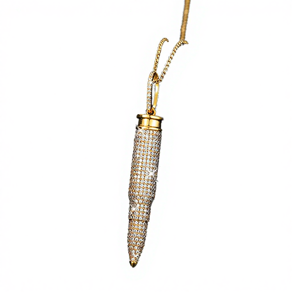 จี้ทรงกระสุนดีไซน์ฮิปฮอป ประดับเพชรทรงกลม ตัวเรือนชุบทอง 14K เงินแท้ 925 สร้อยคอสำหรับงานปาร์ตี้ 男女兼用 ขายดี