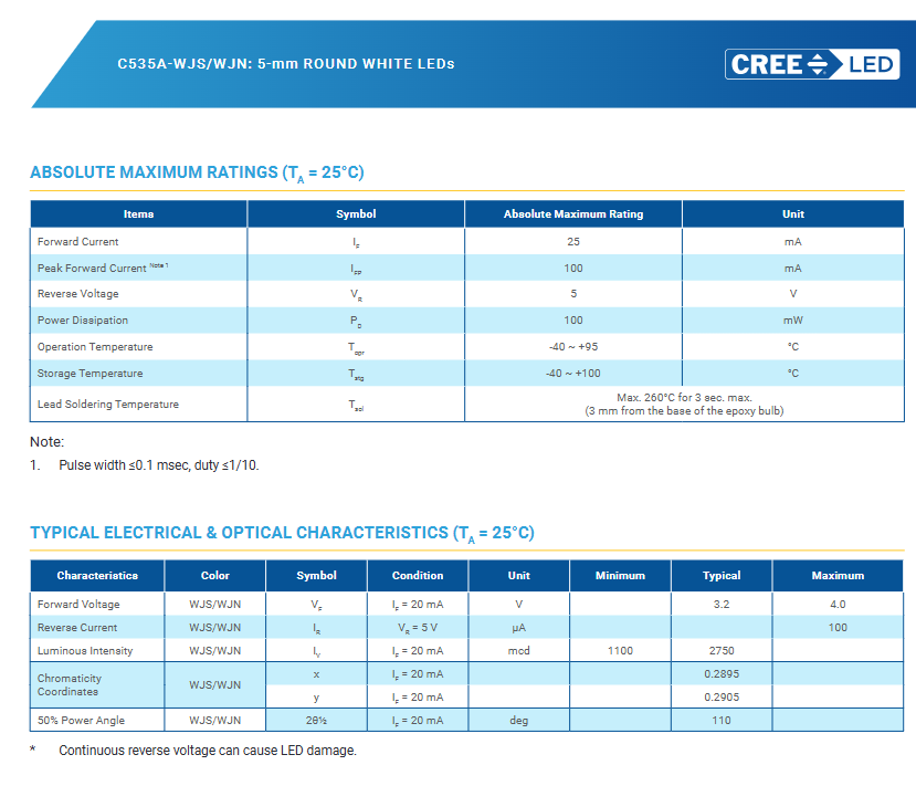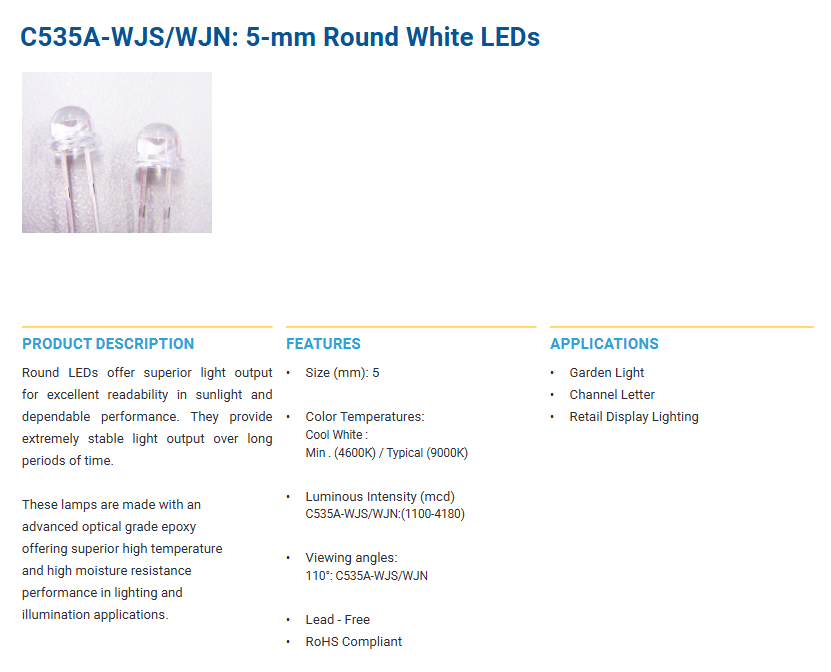 Product name:C535A-WJS/WJN: 5-mm Round White LEDs