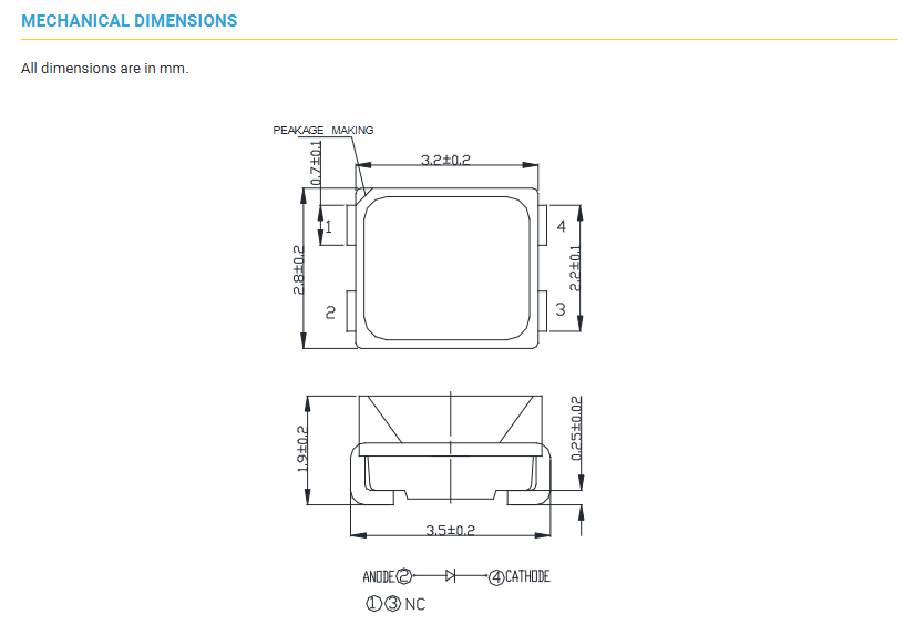 Size:3.20mm L x 2.80mm W