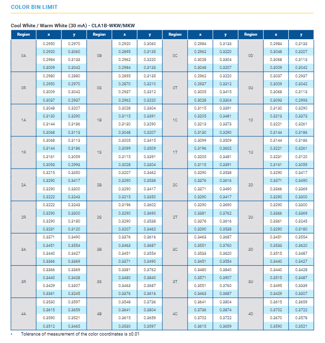 Product name:Crees CLA1B-WKW/MKW: PLCC4 White LEDs