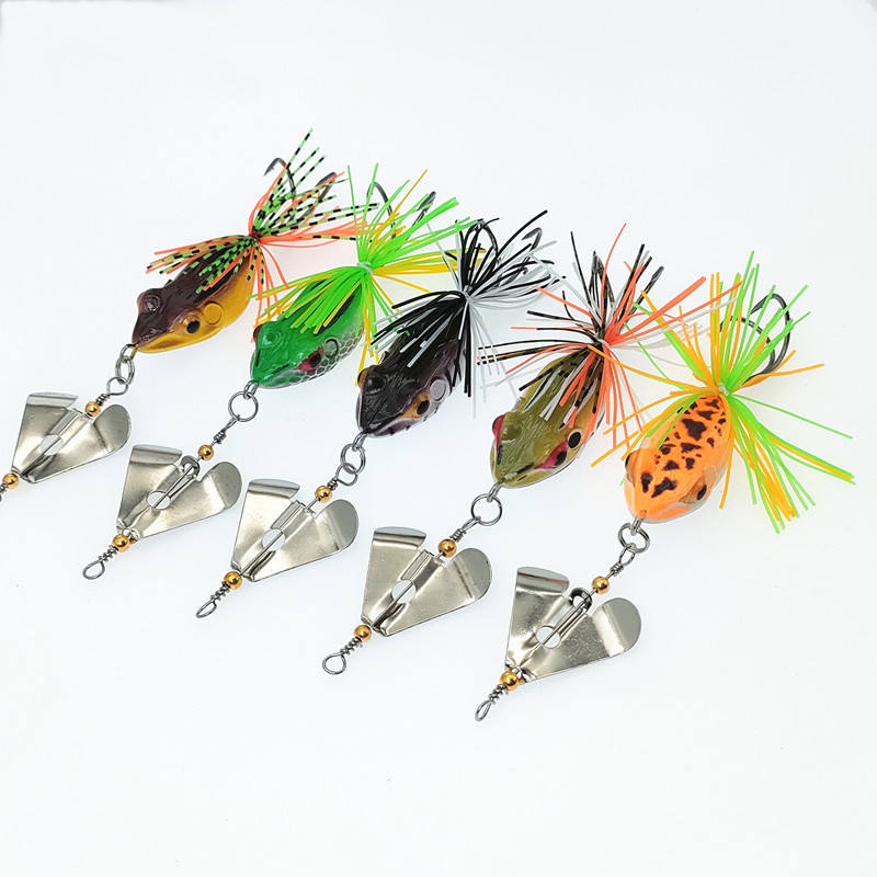เหยื่อตกปลาแบบกบแกะสลัก ขายดี พร้อมหางหมุน เหยื่อปลอมสำหรับตกปลาแบส เหยื่อตกปลาลอยน้ำ