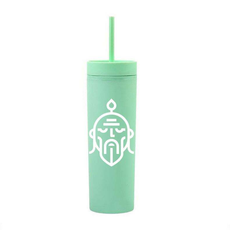 แก้วน้ำพลาสติกพร้อมหลอด16ออนซ์ผนังสองชั้นขวดน้ำเย็นสีสันสดใส