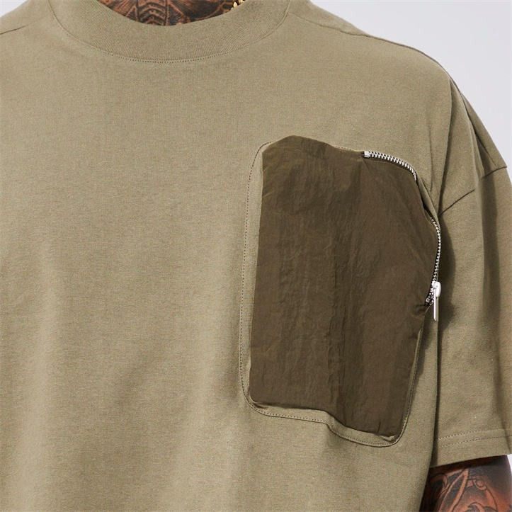 เสื้อยืดผู้ชายแขนสั้นทรงปกติแบบมีกระเป๋าหน้า ผ้าแคนวาสระบายอากาศดี เป็นมิตรกับสิ่งแวดล้อม สัมผัสนุ่ม ขายดี รับผลิตตามแบบ