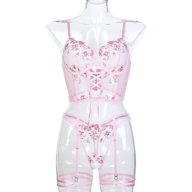 ชุดชั้นในเซ็กซี่ปักลายดอกไม้น่ารักน่ารักเซ็ตชุดชั้นในแบบบาง