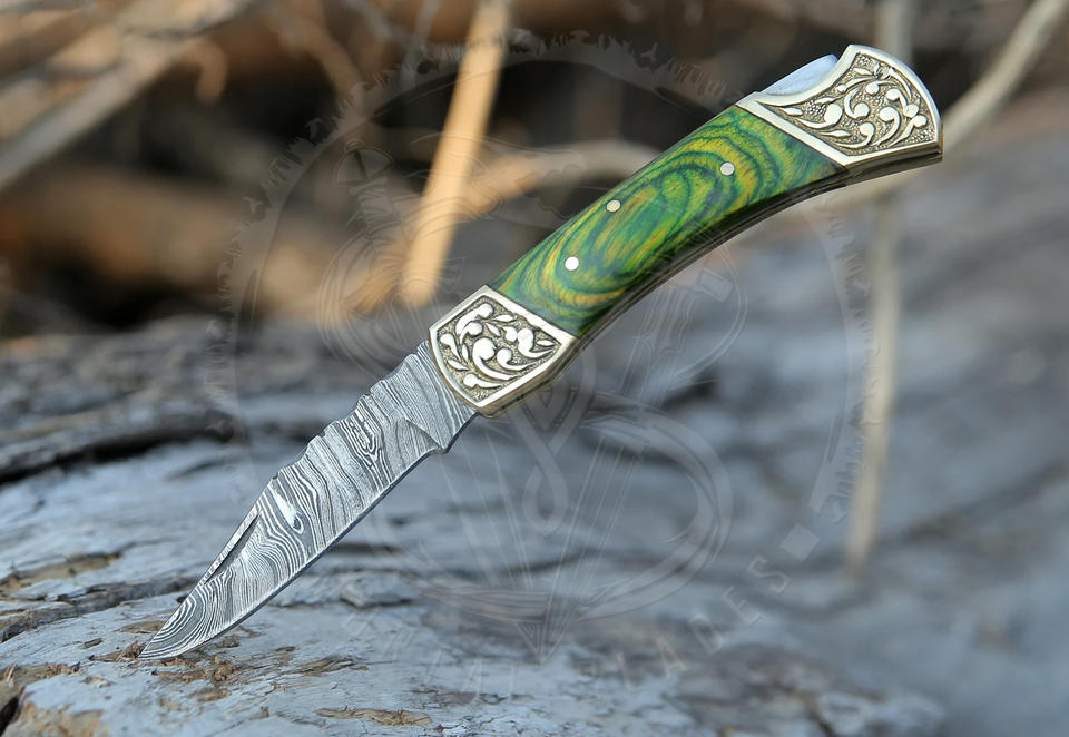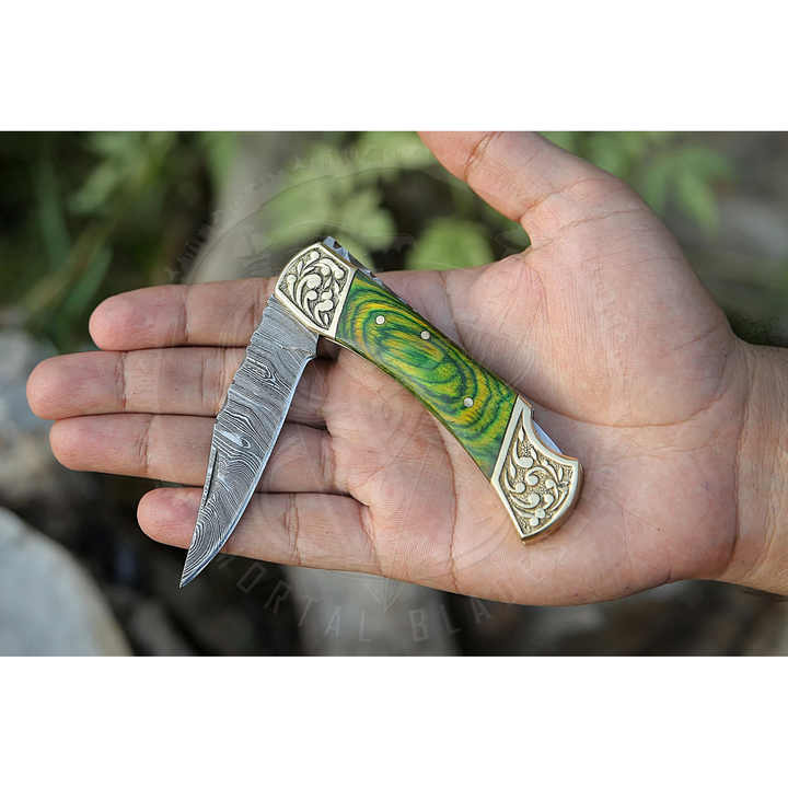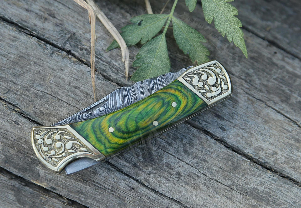 มีดพับเหล็กดามัสกัสขายดี พร้อมด้ามไม้แข็งแรง สำหรับพกพาและตั้งแคมป์กลางแจ้ง รับผลิตแบบ OEM