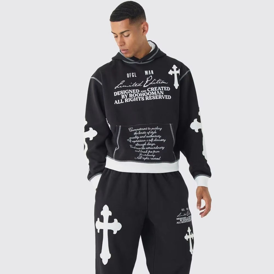 ชุดวอร์มผ้าฝ้ายสีดำสำหรับผู้ชายชุดวอร์มผ้าคอตตอนจ็อกเกอร์พิมพ์ลายและใส่วิ่งใส่ได้ทั้งชายและหญิง