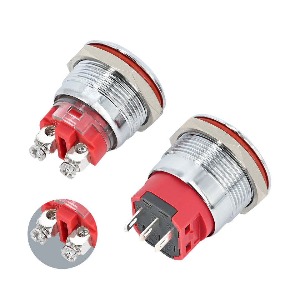 สวิตช์ปุ่มกดโลหะกันน้ำ กระแสสูง 10A ขนาด 25 มม. แบบกดติดปล่อยดับ สำหรับเครื่องยนต์รถยนต์และอุปกรณ์เครื่องจักรกล ขายดี