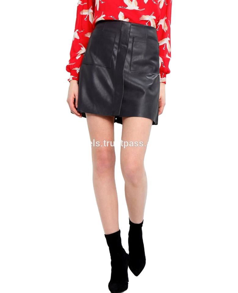 กระโปรงดินสอหนังแกะแท้สำหรับผู้หญิง,กระโปรงสั้นหนังแกะสีดำของแท้สำหรับผู้หญิง