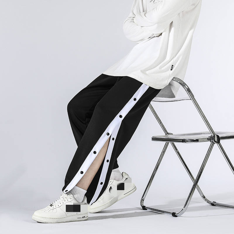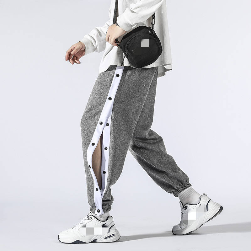 กางเกงแฟชั่นผู้ชายทรงหลวมมีกระดุมด้านข้างดีไซน์ล่าสุด