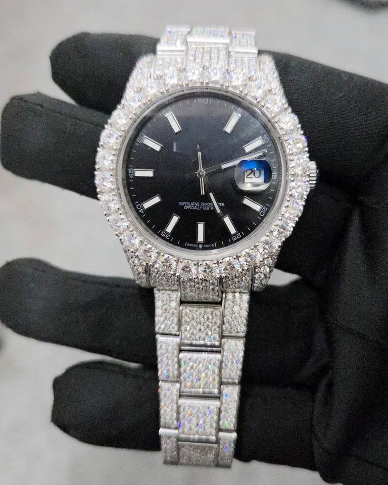 นาฬิกาควอทซ์เพชรลายการ์ตูนสุดหรูสำหรับผู้ชายและผู้หญิงฮิปฮอป VVS D COLOUR Moissanite สแตนเลสสตีลแก้ว