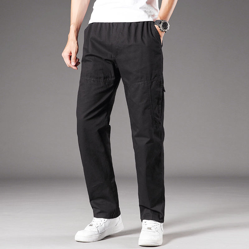 กางเกงขายดี PMT-35 กางเกงผู้ชายออกแบบเองได้ เอวกลาง ผ้าฝ้าย หลายกระเป๋า ทรงหลวม สบายๆ ทรงตรง ไซส์ใหญ่ เอวยางยืด