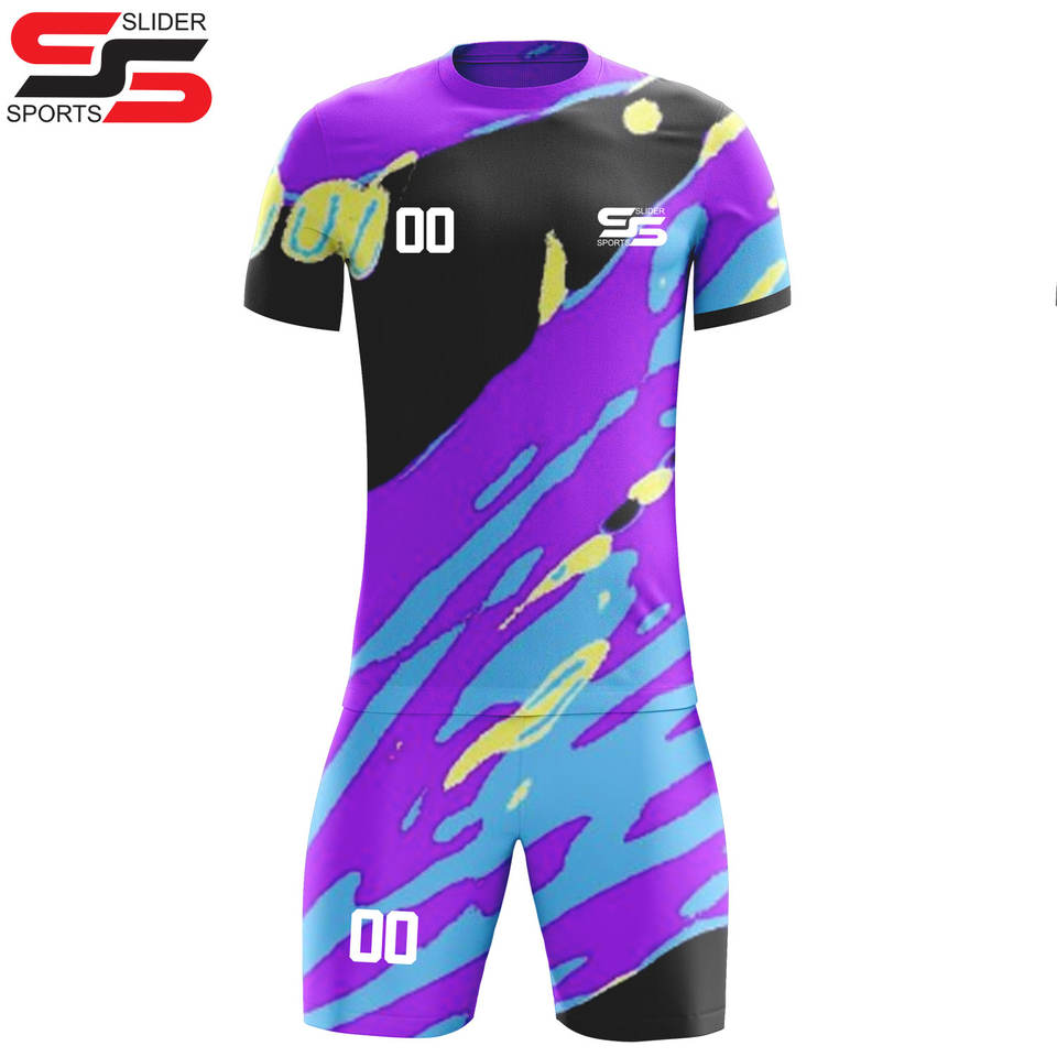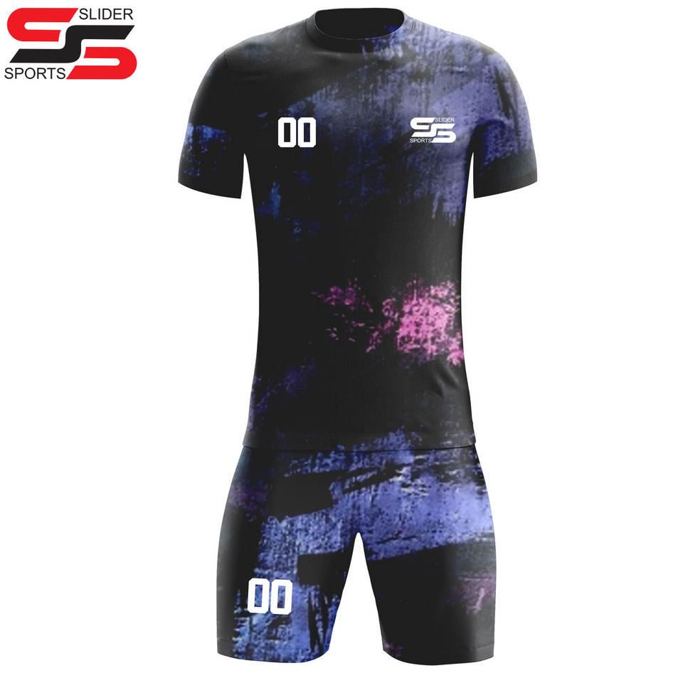 ชุดเสื้อเจอร์ซีย์ฟุตบอลผ้าโพลีเอสเตอร์100% ใส่สบายเสื้อฟุตบอลแฟชั่นออกแบบโลโก้ได้ตามต้องการ