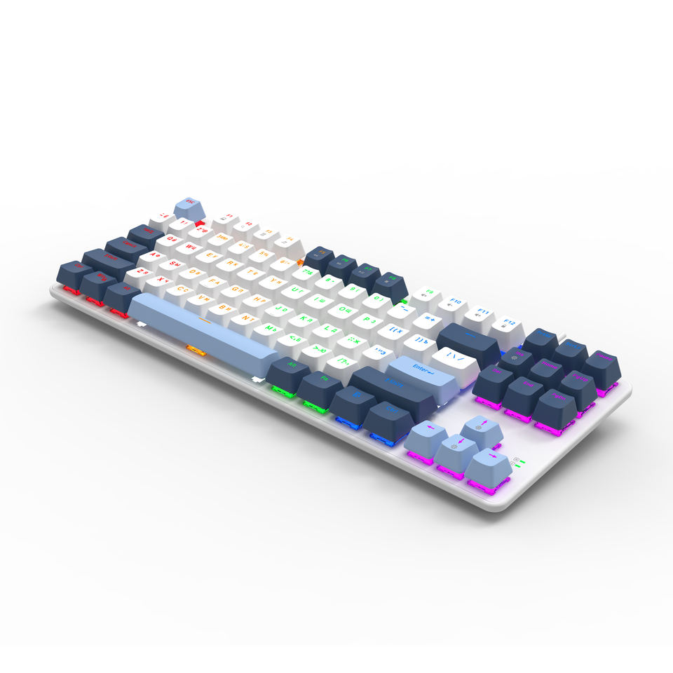คีย์บอร์ดกลไก87ปุ่ม RGB LED แบ็คไลท์แบบมีสายไร้สายสามโหมดคีย์บอร์ดภาษารัสเซีย