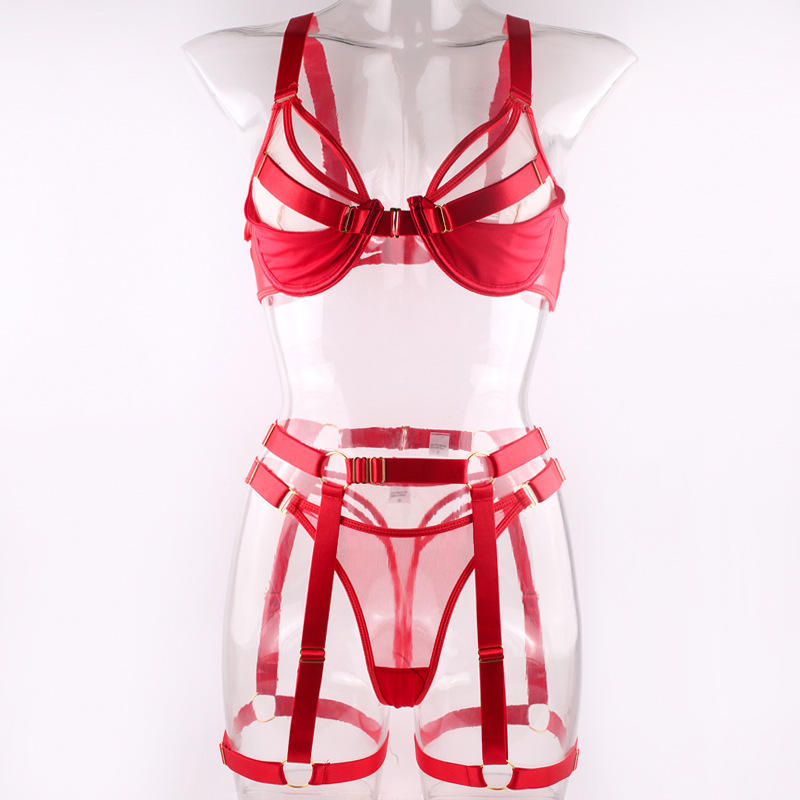 ชุดชั้นในซีทรูตาข่ายแบบแพทช์เวิร์คสุดเซ็กซี่ คุณภาพสูง ดีไซน์เว้าแหวก สายรัดแบบไขว้ ชุด 4 ชิ้น ขายดี
