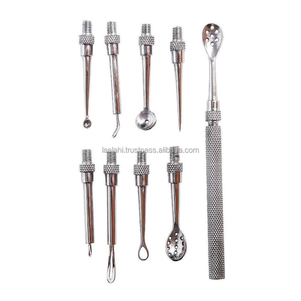 ชุดอุปกรณ์กำจัดสิวหัวดำ สิวอักเสบ สิวเสี้ยน 10 ชิ้น ด้ามจับปรับได้ ผลิตจากสแตนเลสคุณภาพสูง สีดำ ขายดี