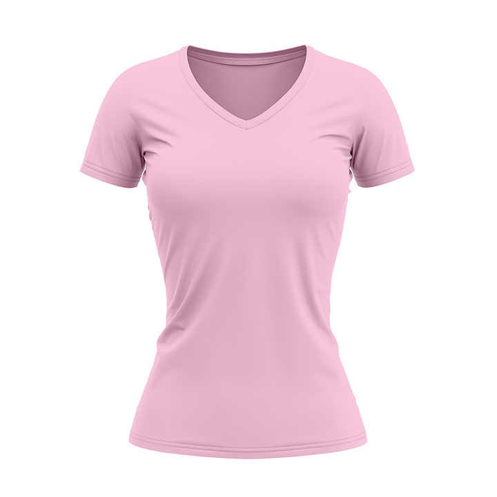 เสื้อยืดคอวีแขนสั้นสำหรับผู้หญิงเสื้อยืดผ้าฝ้ายโพลีเอสเตอร์ออกแบบได้ตามต้องการ