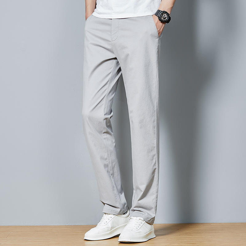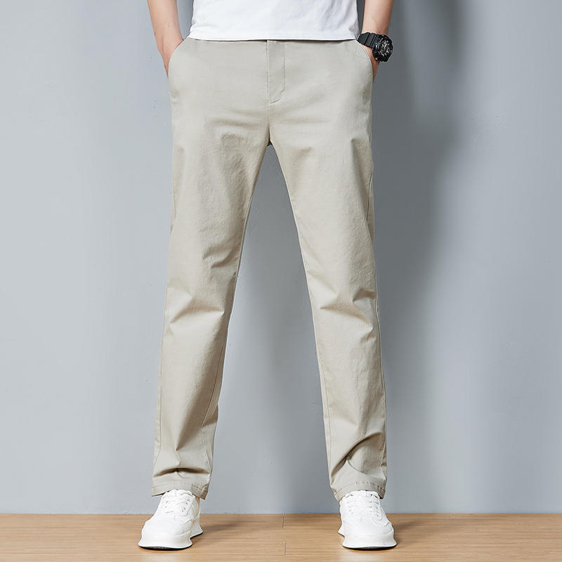 กางเกงผู้ชายขาตรงสำหรับฤดูใบไม้ผลิกางเกงสำหรับวัยรุ่นสีทึบ