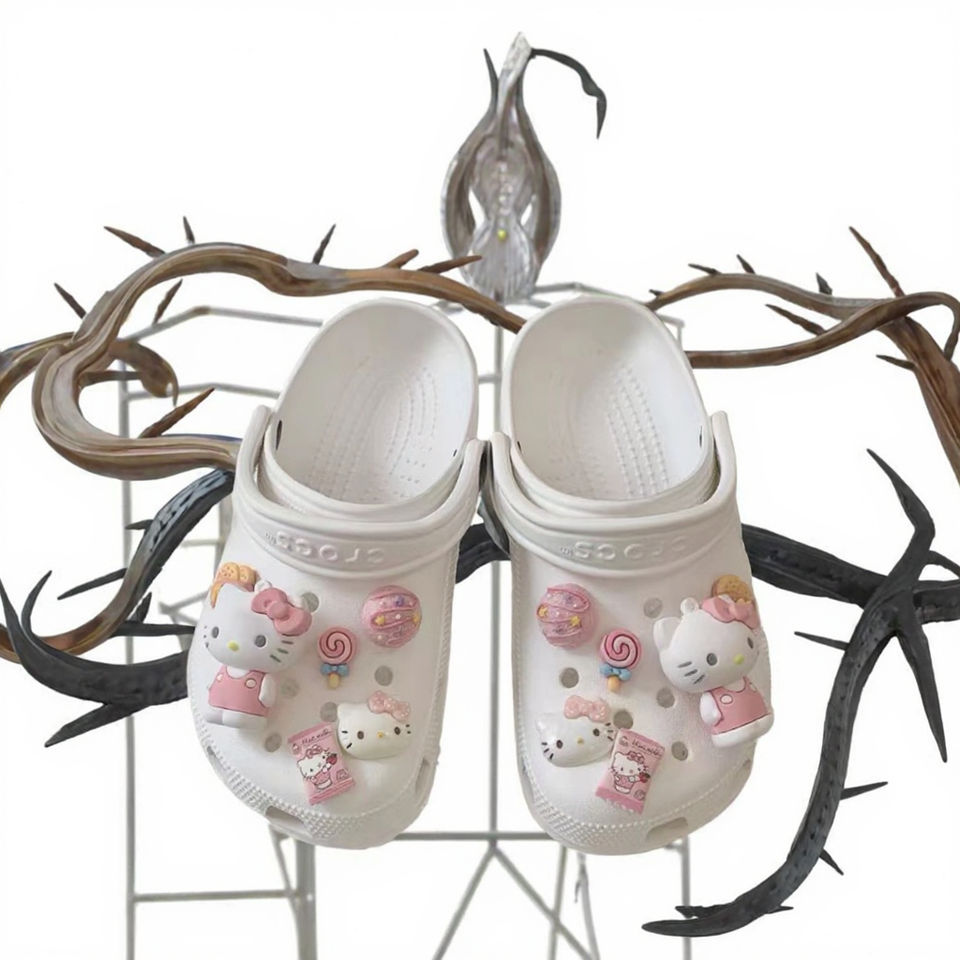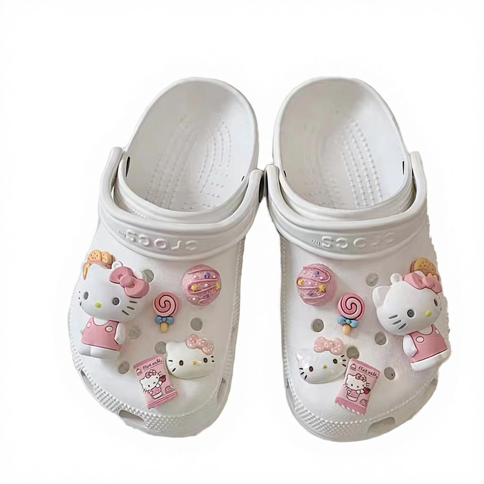 ขายส่งร้อนแรง ตัวตกแต่งรองเท้ารูปการ์ตูนแมว KT แบบ 3 มิติ ทำจากยาง สำหรับผู้หญิง รับสั่งทำ