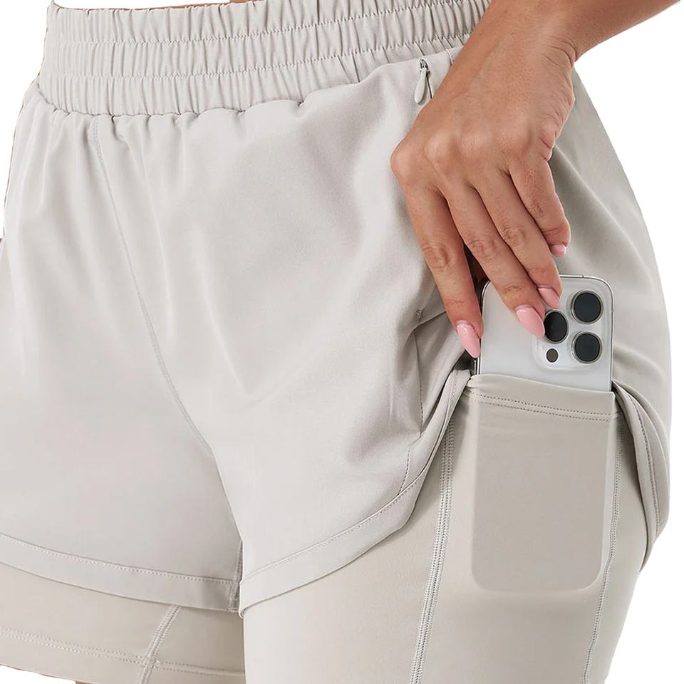 กางเกงขาสั้นเอวสูงสำหรับวิ่งออกกำลังกายสำหรับผู้หญิงกางเกงขาสั้นสำหรับใส่เล่นโยคะฟิตเนสสองชั้นและมีกระเป๋าสำหรับผู้หญิง2026