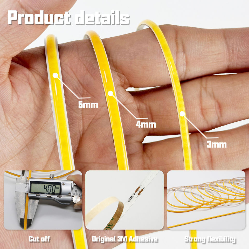 ไฟ LED แบบ COB ขนาดเล็ก 3 มม. 4 มม. 5 มม. 3000K-6000K 12V 24V DC แบบตัดได้ บางเฉียบ ขายดี