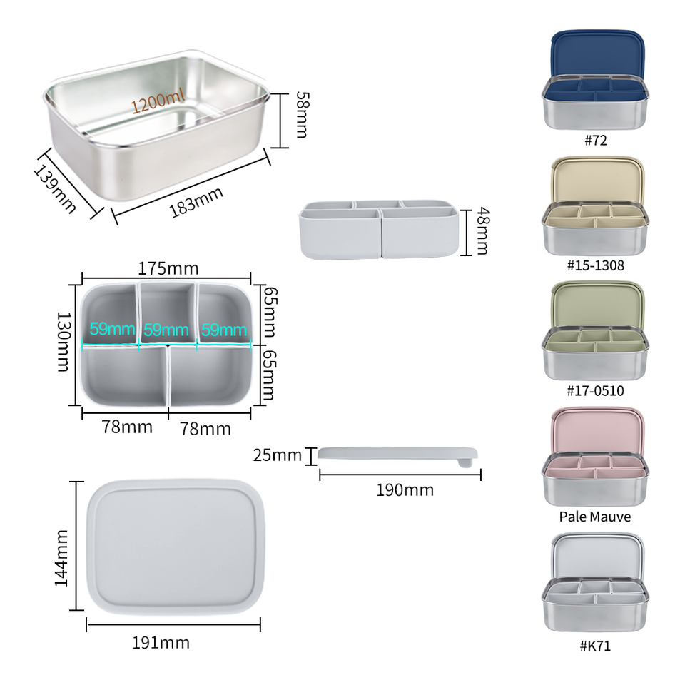 ชื่อผลิตภัณฑ์:ที่แบ่งกล่องอาหารกลางวันทำจากซิลิโคนสแตนเลส