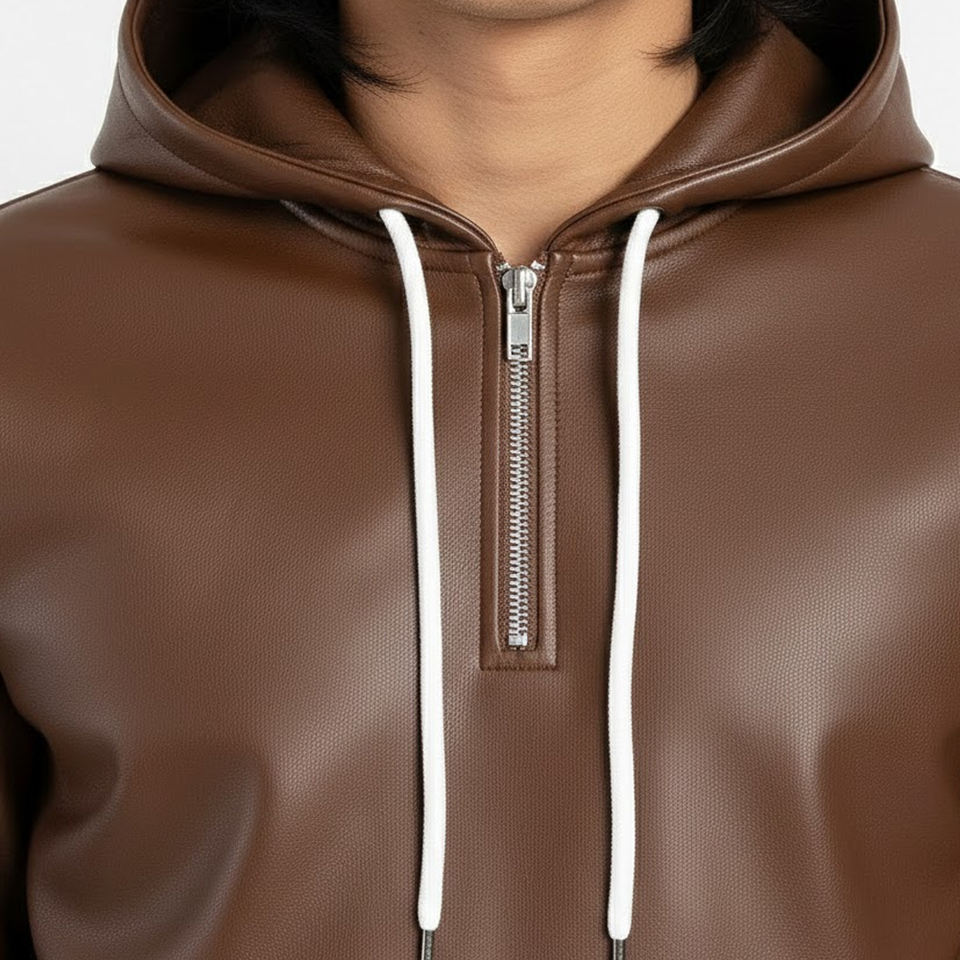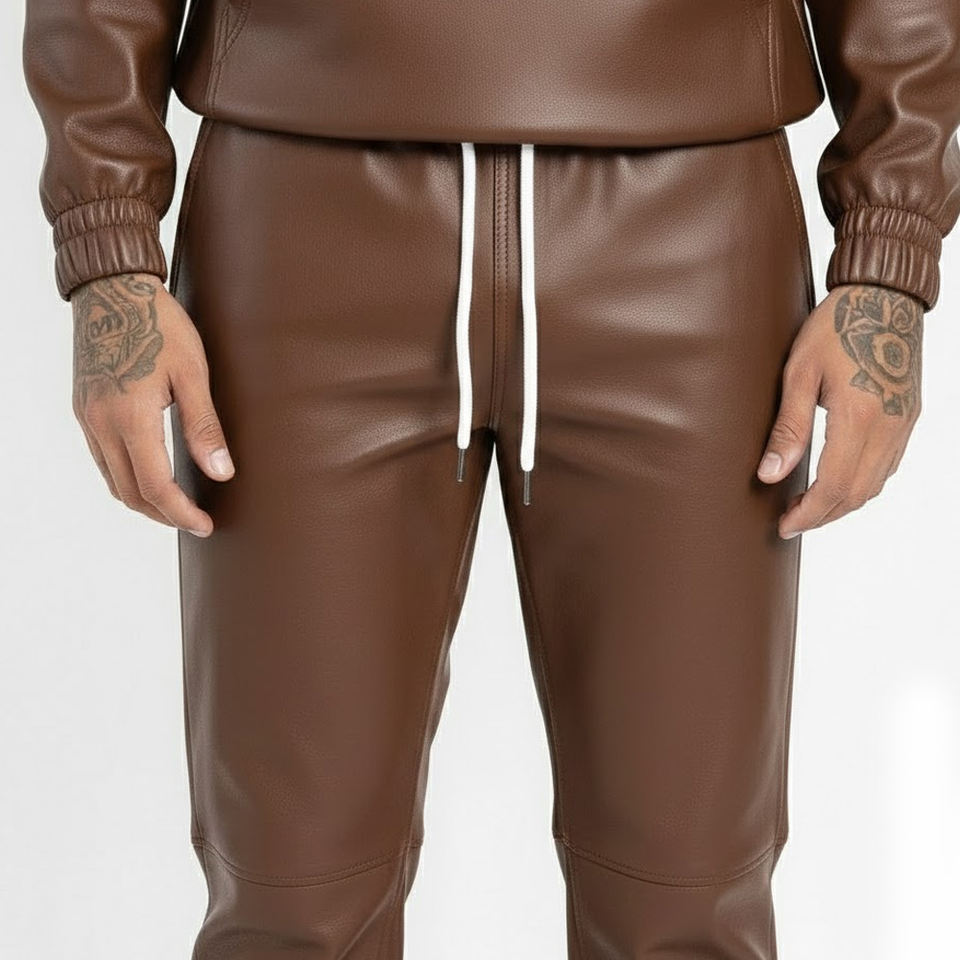 ชุดวอร์มหนังผู้ชายขายดี คุณภาพดี รับออกแบบโลโก้ ชุดวอร์มหนังสไตล์สตรีทแวร์สำหรับผู้ชาย