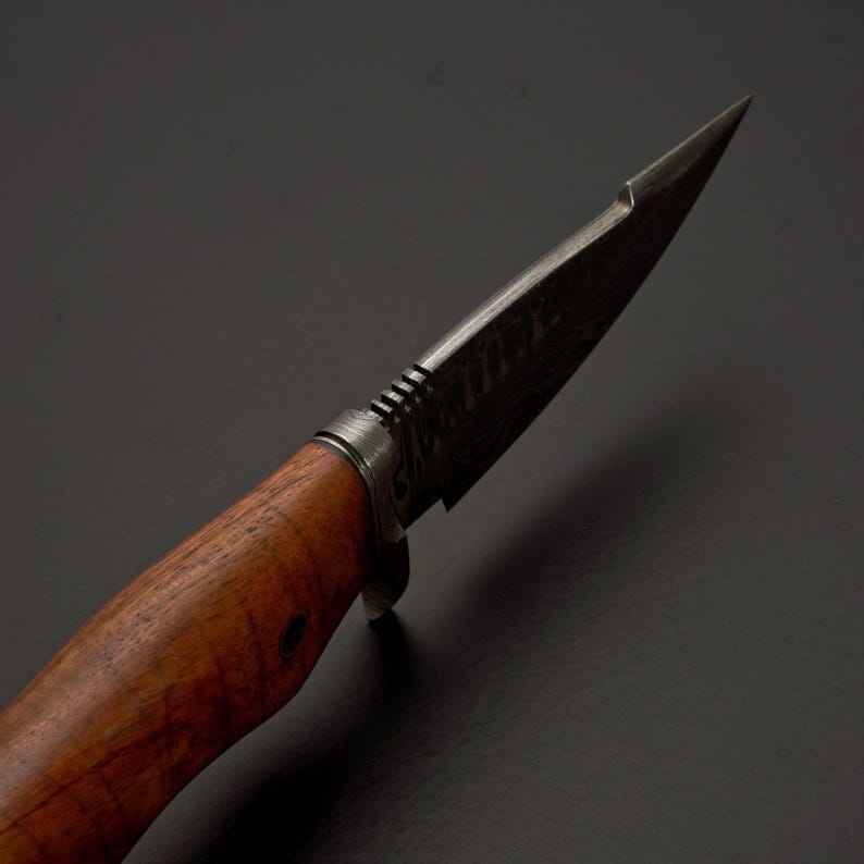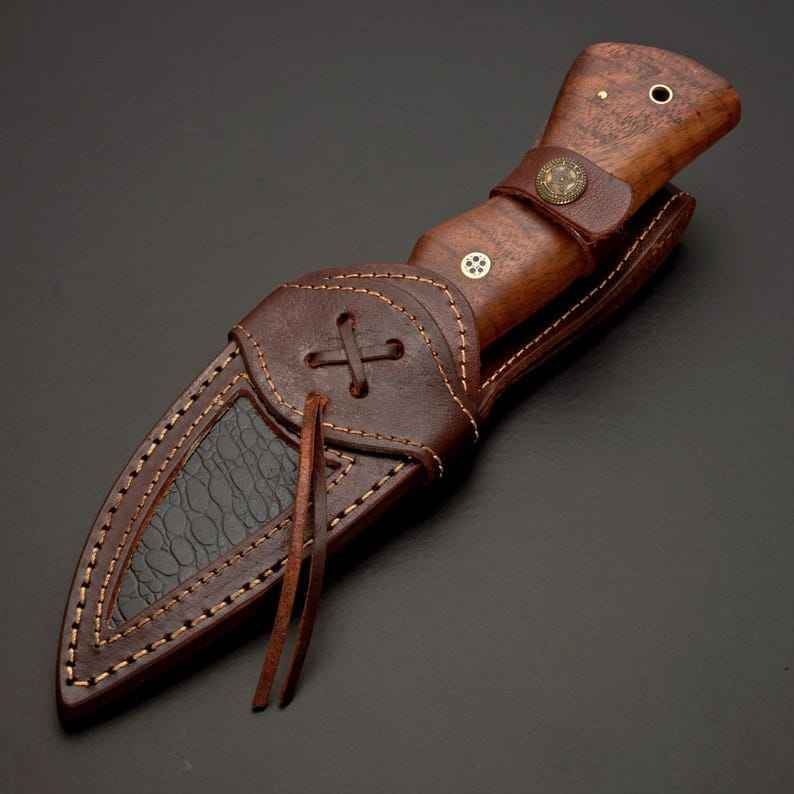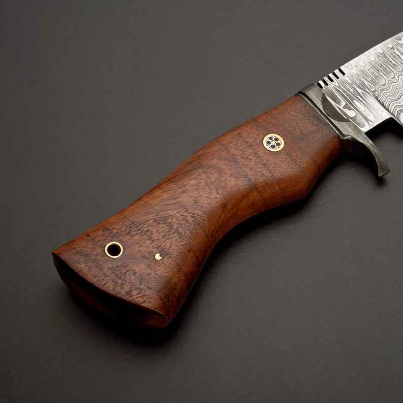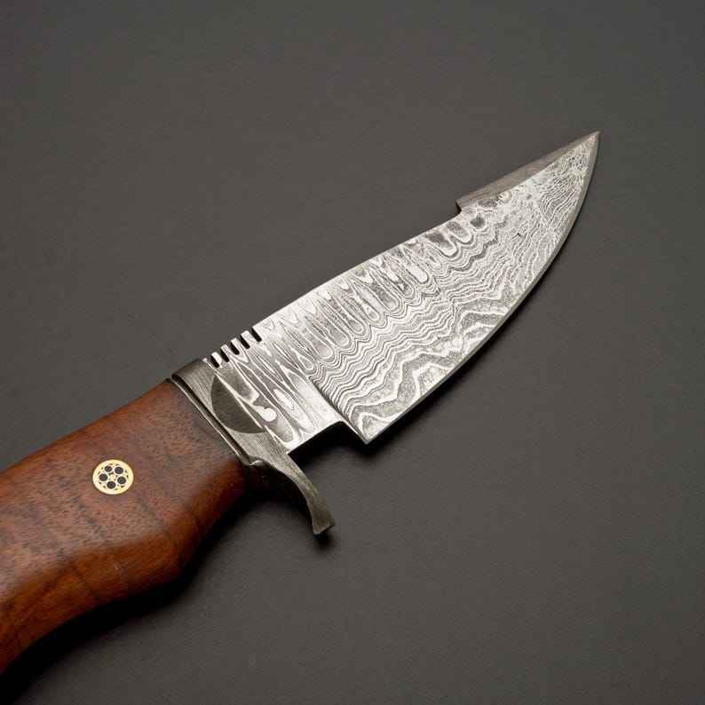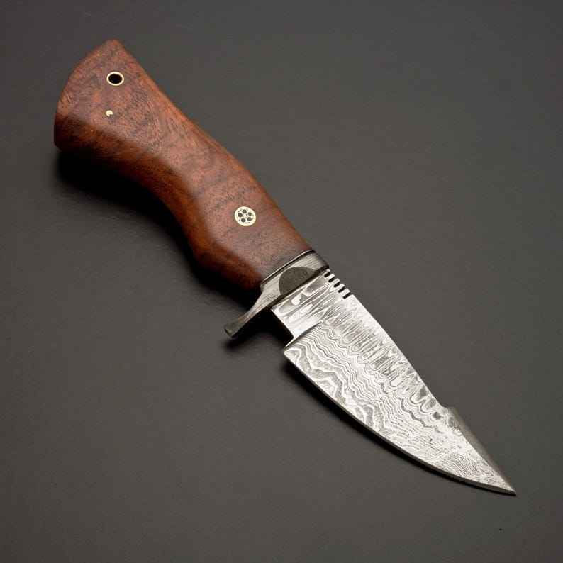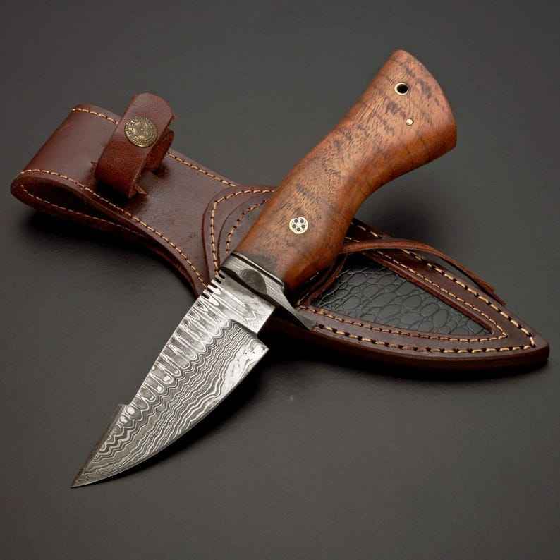 มีดบุชคราฟท์เหล็กดามัสกัสตีขึ้นรูปด้วยมือ ขายดี พร้อมปลอกหนัง รองรับ OEM ใบมีดแบบ Fixed Blade เหมาะสำหรับตั้งแคมป์และล่าสัตว์