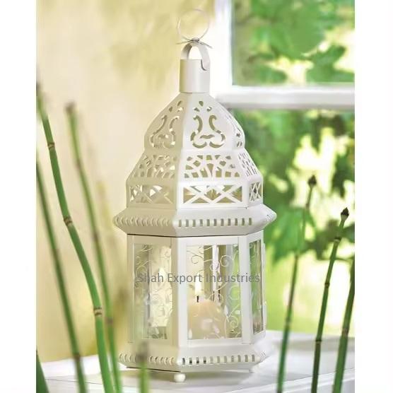 โคมไฟโลหะเหล็กสำหรับทำเทียนงานหัตถกรรมโคมไฟแขวนสำหรับงานเทศกาลและงานแต่งงานสีดำ