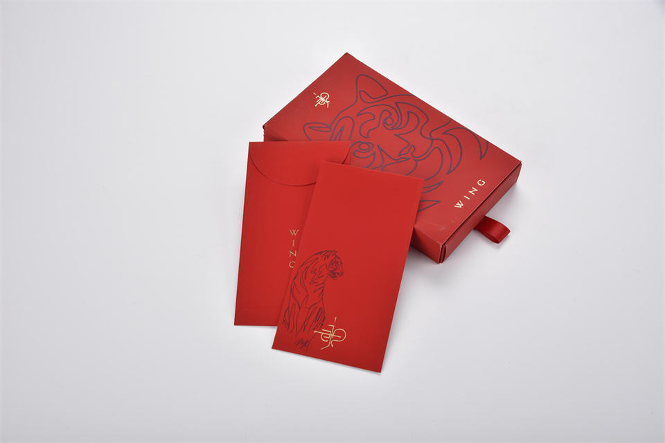 กล่องกระดาษสีแดงแบบสัมผัสนุ่มสำหรับจัดเก็บแพ็คเก็ตซองจดหมายพิมพ์ลายและลายนูนแบบพกพา