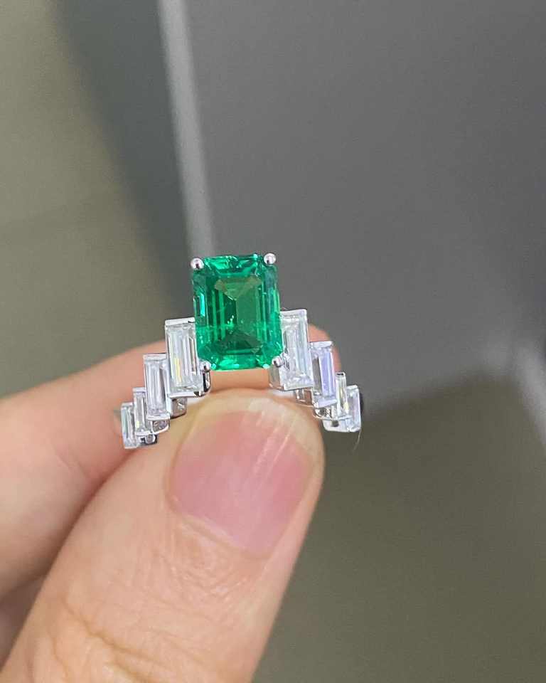แหวนแต่งงานทองคำขาว 14k ประดับเพชรซิคอนสังเคราะห์ทรงเหลี่ยมมรกต 1.50 กะรัต ขายดี เหมาะสำหรับงานปาร์ตี้
