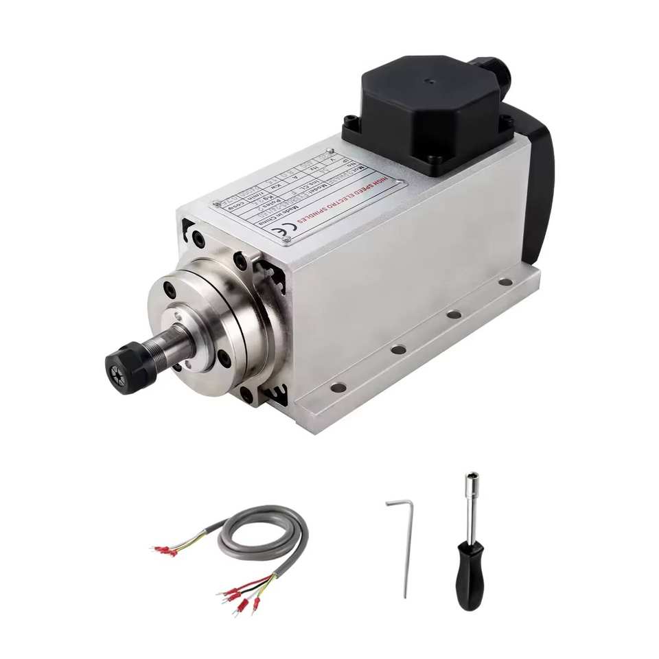 มอเตอร์แกนหมุนความเร็วสูง 1.5KW ER11 ระบายความร้อนด้วยอากาศ แบบสี่เหลี่ยม พร้อมลูกปืน 4 ตัว สำหรับเครื่อง CNC Router แกะสลักและกัด ขายดี