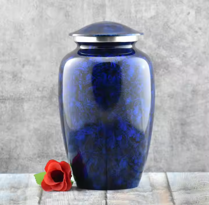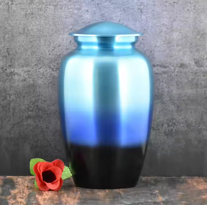 โกศเผาศพสไตล์อเมริกันขนาด10นิ้ว8ลูกบาศก์นิ้วขี้เถ้าของมนุษย์สีน้ำเงินไตรสีฟ้าปรับแต่งได้
